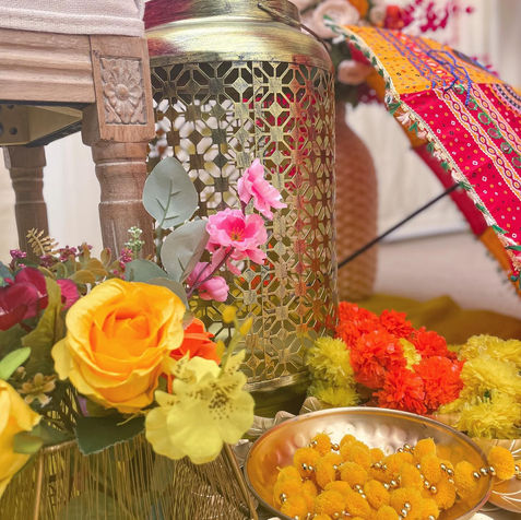 The Haldi ceremony is a vibrant and joyful pre-wedding ritual filled with laughter, colour, and tradition. Decor for Haldi is typically centred around bright yellow tones, symbolising positivity and new beginnings, with marigold florals, rustic props, and low seating arrangements creating a relaxed, festive vibe.